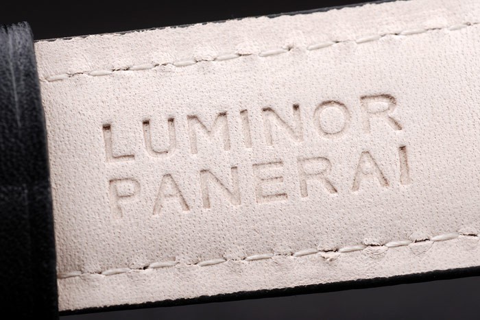 Rannekoru: Musta nahkaranneke lämpöä kohokuvioitu Luminor Panerai leima & ioni- pinnoitettu ruostumaton teräs koukku-solki lukko kanssa Panerai engraving