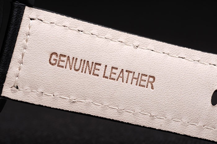 Rannekoru: Musta nahkaranneke lämpöä kohokuvioitu Luminor Panerai leima & ioni päällystetty ruostumaton teräs koukku-solki lukko kanssa Panerai engraving