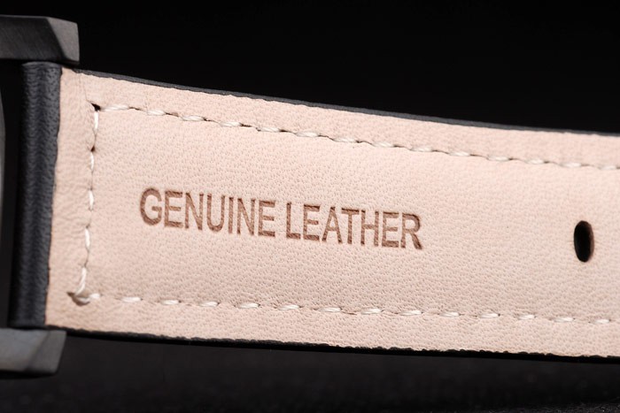 Rannekoru: Musta nahkaranneke lämpöä kohokuvioitu Luminor Panerai leima & ioni- pinnoitettu ruostumaton teräs koukku-solki lukko kanssa Panerai engraving
