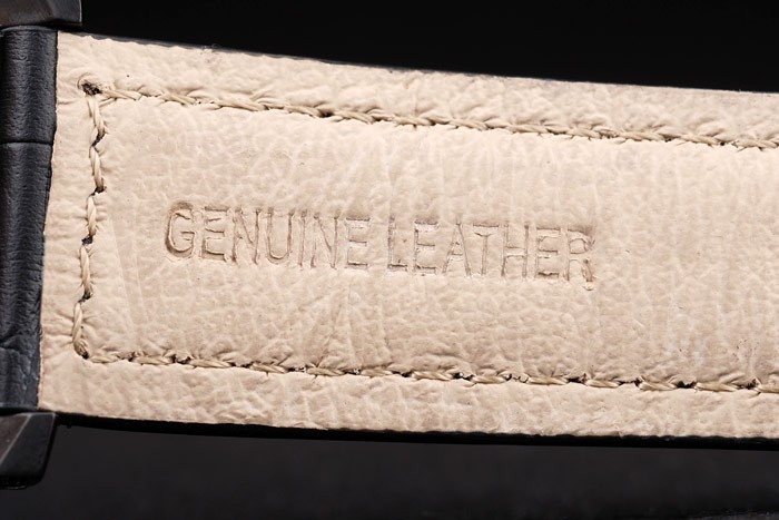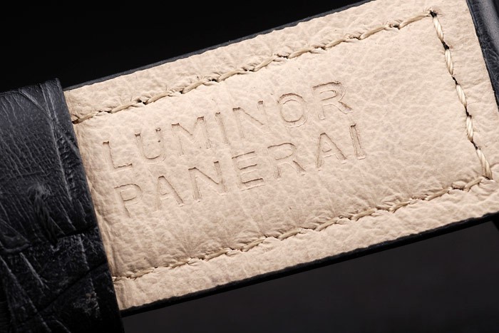 Rannekoru: Musta krokotiili nahkahihna valkoiset tikkaukset & lämmön kohokuvioitu Luminor Panerai leima & ioni päällystetty ruostumaton teräs koukku-solki lukko kanssa Panerai engraving