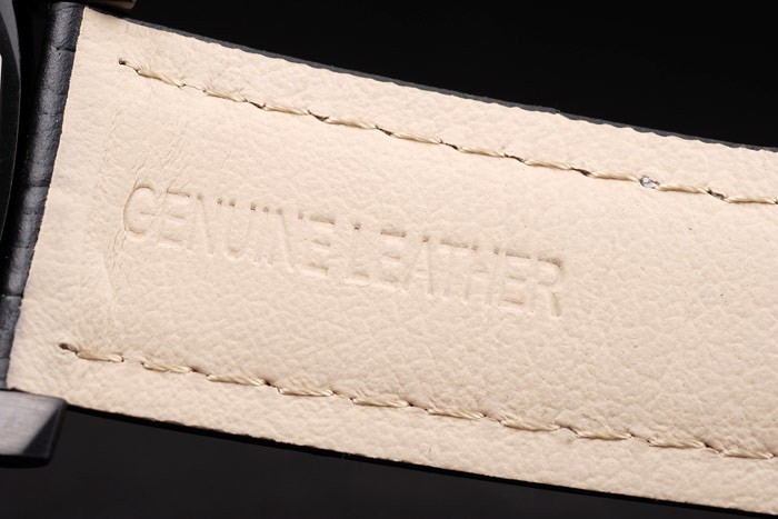 Rannekoru: Musta krokotiili nahkahihna valkoiset tikkaukset & lämmön kohokuvioitu Luminor Panerai leima & ioni päällystetty ruostumaton teräs koukku-solki lukko kanssa Panerai engraving