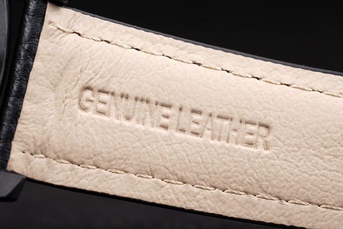 Rannekoru: Musta nahkahihna valkoiset tikkaukset & lämmön kohokuvioitu Luminor Panerai leima & ioni päällystetty ruostumaton teräs koukku-solki lukko kanssa Panerai engraving