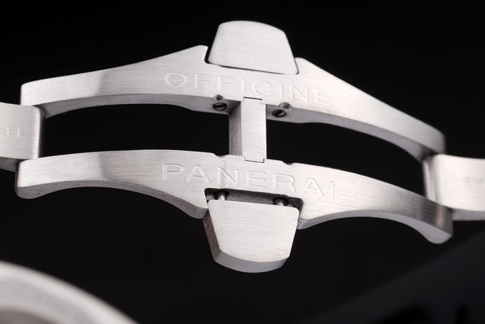 Rannekoru: Panerai Italia kohokuvioitu mustaa kumia hihna harjattua ruostumatonta terästä Officine Panerai kaiverrettu taitettavan koukku Lukko