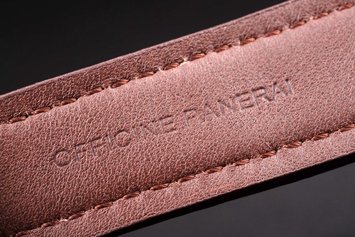 Rannekoru: Ruskea nahkahihna lämpöä kohokuvioitu Officine Panerai Italian leima & harjattu teräs hook- solki lukko kanssa Panerai engraving
