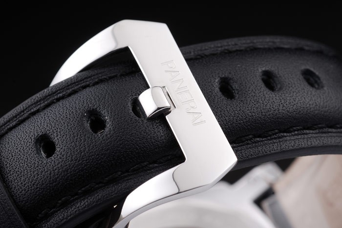 Rannekoru: Musta nahkaranneke lämpöä kohokuvioitu Luminor Panerai leima & kiillotettua ruostumatonta terästä koukku-solki lukko kanssa Panerai engraving