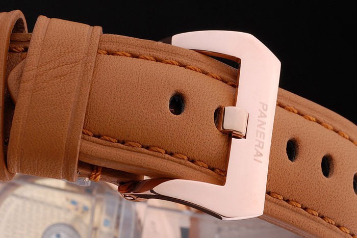 Rannekoru: Orange nahkaremmi lämpöä kohokuvioitu Luminor Panerai leima & Panerai merkitty 18k keltainen kullattu koukku-solki Lukko