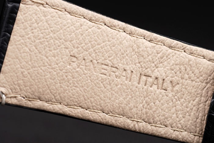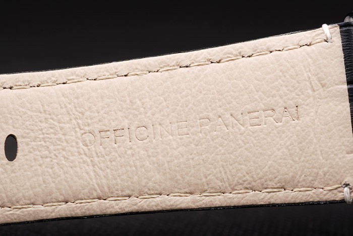 Rannekoru: Musta krokotiili nahkahihna valkoiset tikkaukset & lämmön kohokuvioitu Officine Panerai Italian leima & ioni päällystetty hook-solki lukko kanssa Panerai engraving