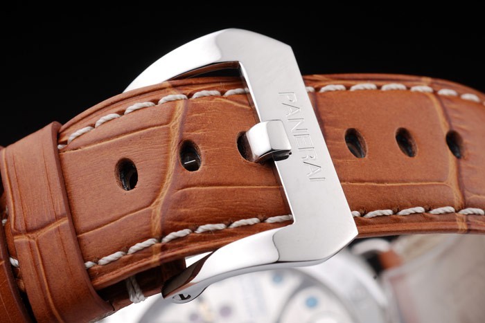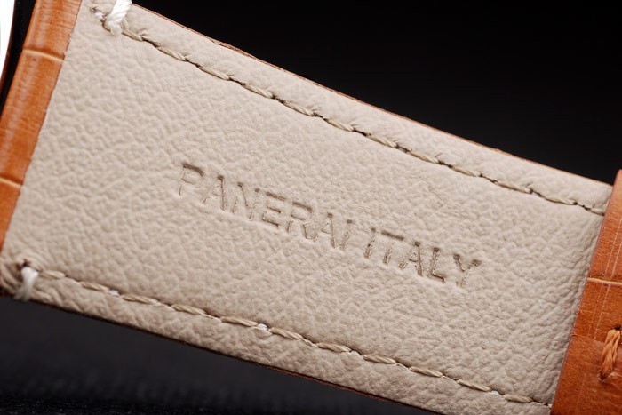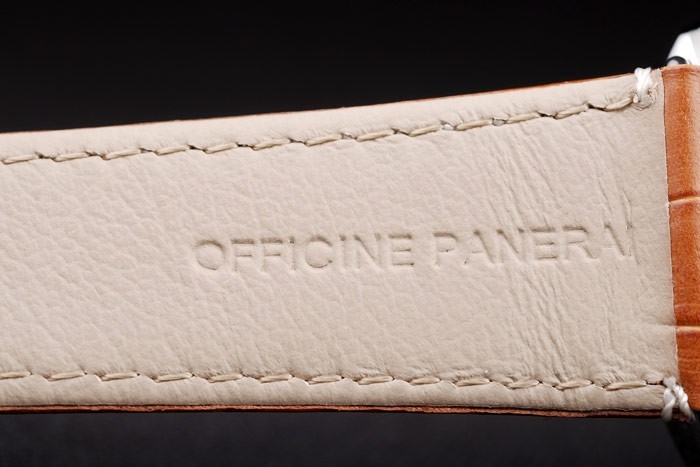 Rannekoru: Brown krokotiili nahkahihna valkoiset tikkaukset & lämmön kohokuvioitu Officine Panerai Italian leima & kiillotettu ruostumaton teräs koukku-solki lukko kanssa Panerai engraving