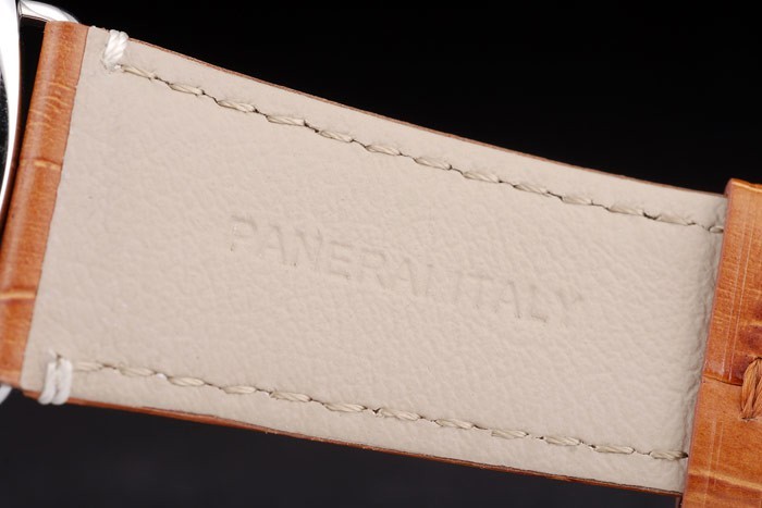 Rannekoru: Brown krokotiili nahkahihna valkoiset tikkaukset & lämmön kohokuvioitu Officine Panerai Italian leima & kiillotettua ruostumatonta terästä hook-solki lukko kanssa Panerai engraving