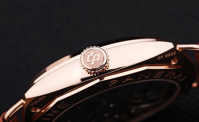 Kello on AR lasia. Kasvot väri näkyy eri värejä mukaan, miten valo osuu itTakaisin: ruuvi, kiinteä 440 ruostumaton teräs, kaiverrettu Panerai name