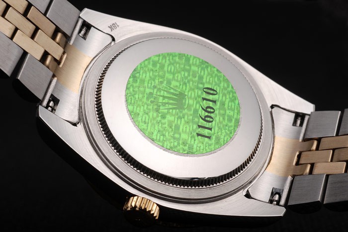Takaisin: Ruostumaton teräs push-in tapauksessa takaisin vihreä Rolex logo stamp