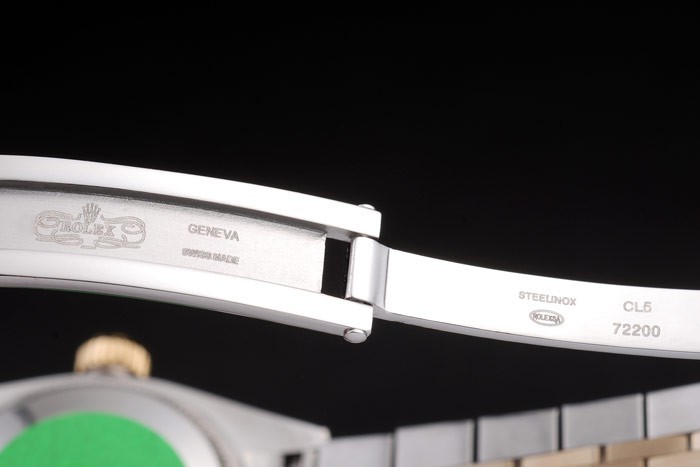 Rannekoru: Kaksi äänisen linkki rannekoru harjatusta ruostumattomasta teräksestä & 18k keltainen kullattu terästä Rolex kaiverrettu piilotettu lukko näyttämällä Rolex logo
