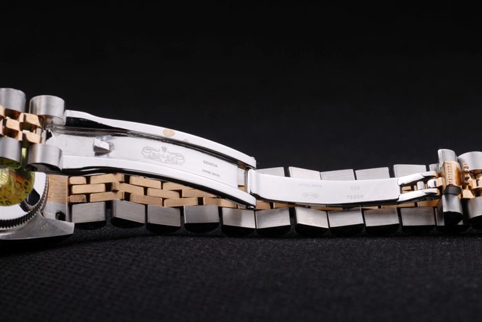 Rannekoru: Kaksi äänisen linkki rannekoru kiillotetusta ruostumattomasta teräksestä & 18k keltainen kullattu terästä Rolex kaiverrus piilotettu lukko näyttämällä Rolex logo