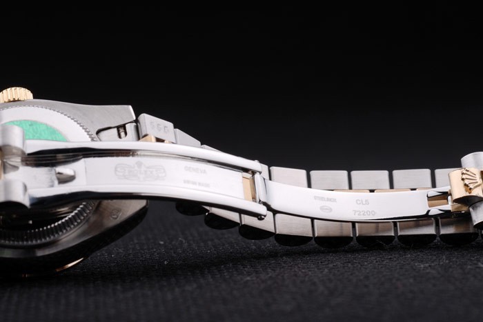 Rannekoru: Kaksi äänisen kolmoislenkki rannekoru kiillotetusta ruostumattomasta teräksestä & 18k keltainen kulta pinnoitettua terästä Rolex kaiverrus piilossa lukko näytetään Rolex logo