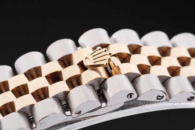 Rannekoru: harjattu ruostumaton teräs & keltainen kultaa linkin ketjun taita lukko & Rolex Kruunu engraving