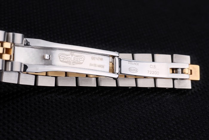 Rannekoru: Kaksi äänisen linkki rannekoru harjatusta ruostumattomasta teräksestä & 18k keltainen kullattu terästä Rolex kaiverrus piilotettu lukko näyttämällä Rolex logo