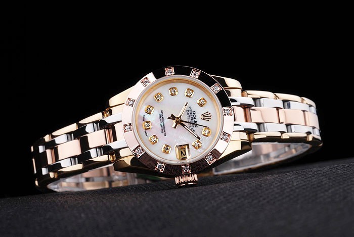 Rannekoru: Kaksi äänisen fancy linkki rannekoru 18K nousi kullattu ruostumaton teräs & kiillotettua ruostumatonta terästä Rolex kaiverrus piilotettu lukko näyttämällä Rolex logo
