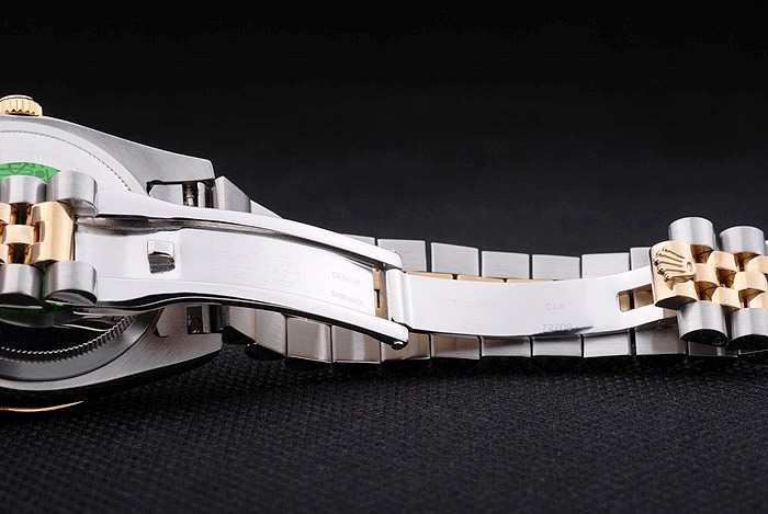Rannekoru: Kaksi äänisen linkki rannekoru harjatusta ruostumattomasta teräksestä & 18k keltainen kullattu terästä Rolex kaiverrus piilotettu lukko näyttämällä Rolex logo