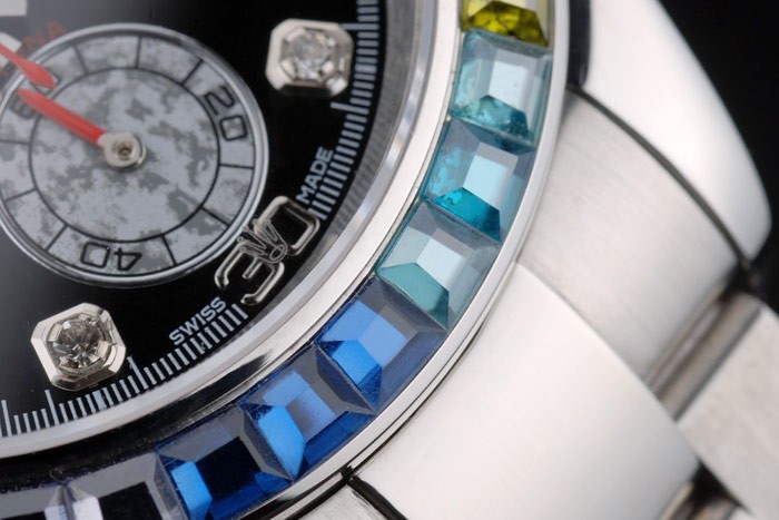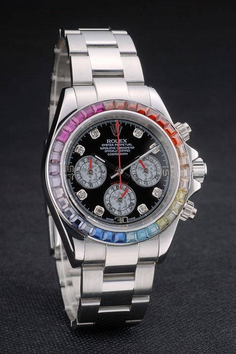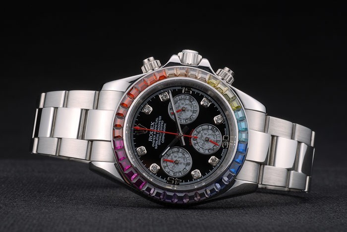 Rolex Daytona Cosmograph Rainbow kiteet Kehys ruostumatonta Jyrkkä hihna Musta Valitsin 80250