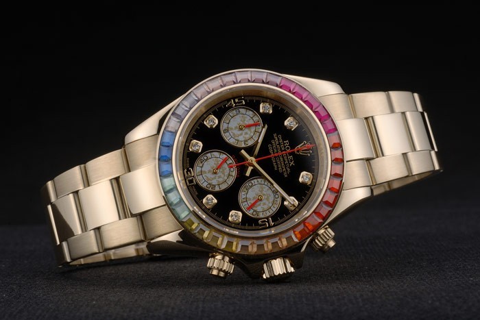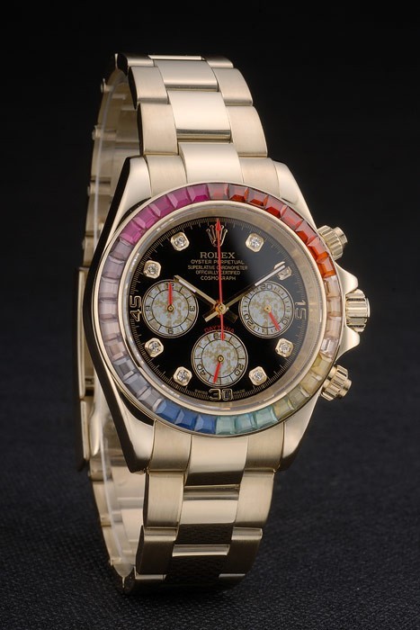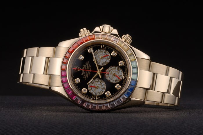 Rolex Daytona Cosmograph Rainbow Kiteet Reuna Ruusu Kulta hihna Musta Valitsin 80251