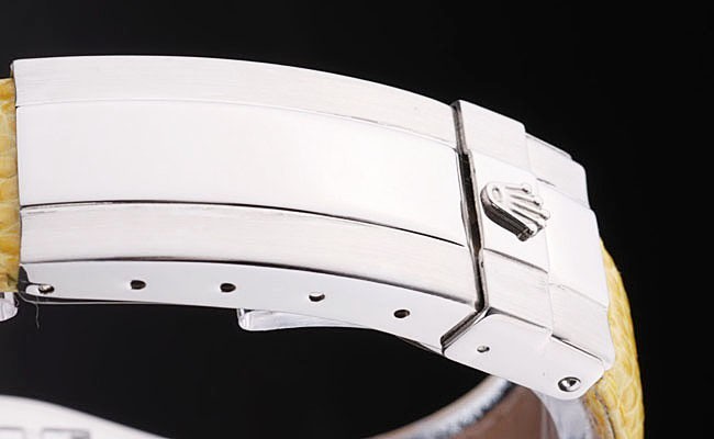 Rannekoru: Keltainen käärme nahka hihna Rolex & logokaiverrukselle & ruostumattomasta teräksestä käyttöönoton lukko näyttämällä Rolex logo