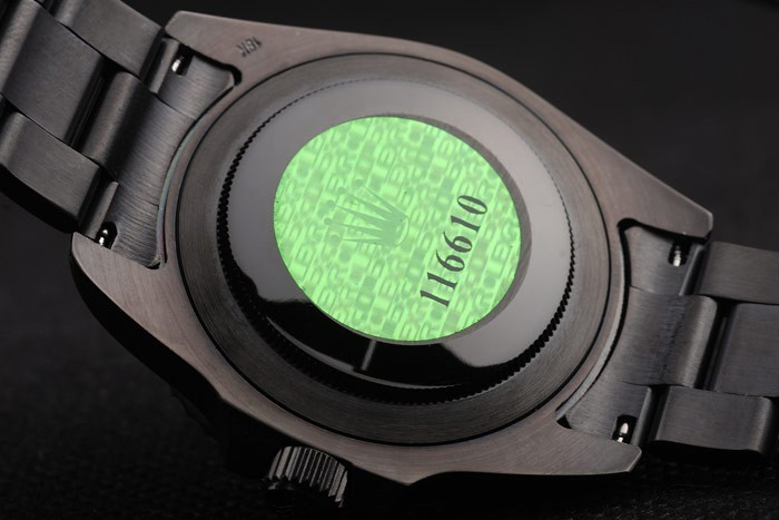 Takaisin: Ion-pinnoitettu ruostumaton teräs push-in tapauksessa takaisin vihreä Rolex logo stamp