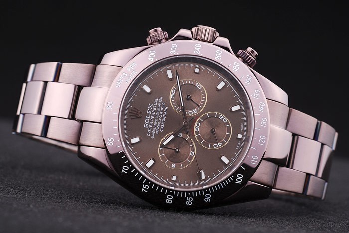 Rannekoru: Rosy ruskea jauhe päällystetty harjattua ruostumatonta terästä linkki rannekorun Rolex logo käyttöönotto Lukko