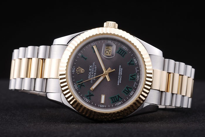 Rannekoru: harjattua ruostumatonta terästä & keltakultaa linkki rannekorun Rolex logo piilotettu Lukko