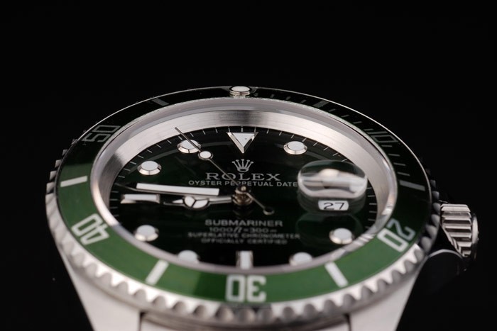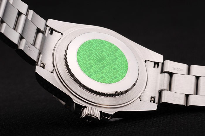 Takaisin: Push ruostumattomasta teräksestä takana vihreällä Rolex tarra & markings