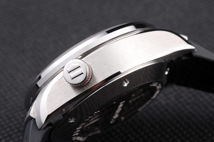 Kruunu: kiillotettu ruostumaton teräs cutwork Kruunu mustalla emali Tag Heuer logo plus kaksi suorakaiteen push-button Kruunut kummallekin puolelle & yksi iso Kruunu vastakkaisella yläkulmaa kanssa logo