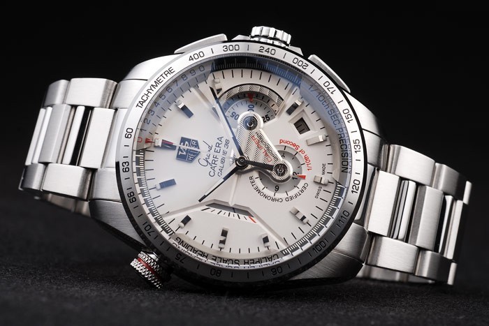 Sveitsin Tag Heuer Rotu Tachymeter Kehys ruostumatonta terästä Valkoinen Valitsin