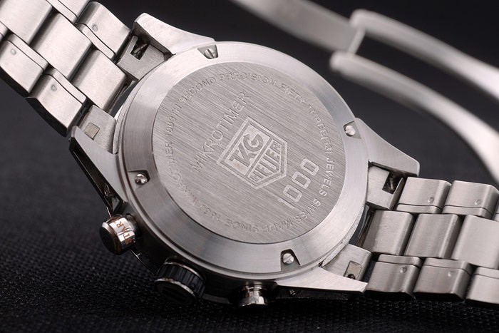 Takaisin: harjattua ruostumatonta terästä ruuvattu takaisin Tag Heuer engravings