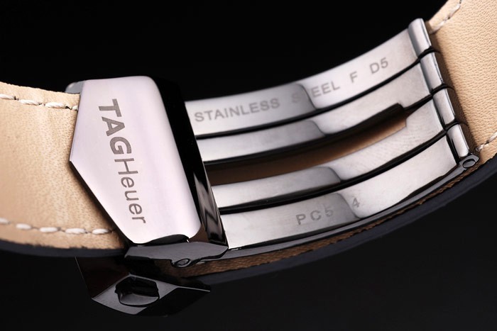 Rannekoru: Musta krokotiili nahkaranneke lämpö painettu leima Tag Heuer & ioni päällystetty push-release fold-in lukko Tag Heuer logo top