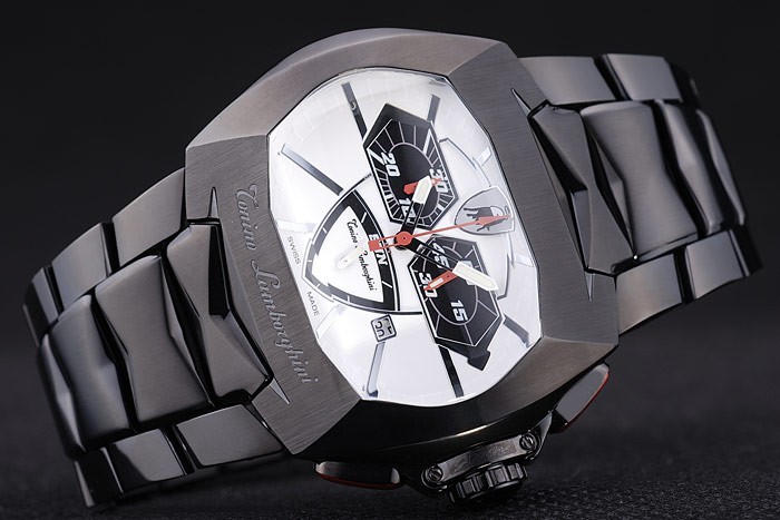Kruunu: Ion-pinnoitettu ruostumaton teräs cutwork Kruunu Tonino Lamborghini logo & kaksi punaista kiilteen päällä pitkänomainen painike Kruunut molemmin puolin it