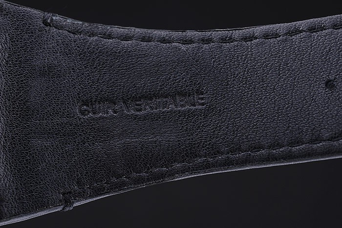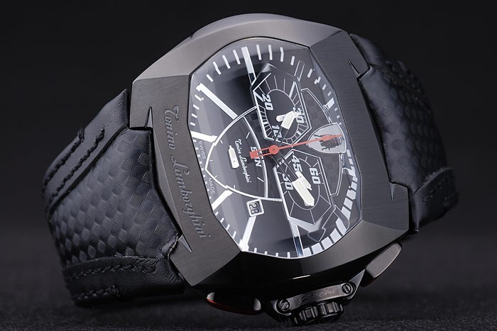 Rannekoru: Musta nahkaranneke lämpöä kohokuvioitu leima & Tonino Lamborghini Tonino Lamborghini logo painettu & kaiverrettu ioni päällystetty kertainen in flip-over koukku Lukko