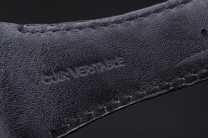 Rannekoru: Musta nahkaranneke lämpöä kohokuvioitu leima & Tonino Lamborghini Tonino Lamborghini logo kaiverrettu & kohokuvioitu ruusukullan pinnoitettu taitettava läppä-koukulle Lukko