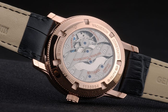 Takaisin: 18k Ruusu-kullattu snap-in takaisin Vacheron Constantin kaiverrukset & läpinäkyvä mekaniikka paljastava keskusta