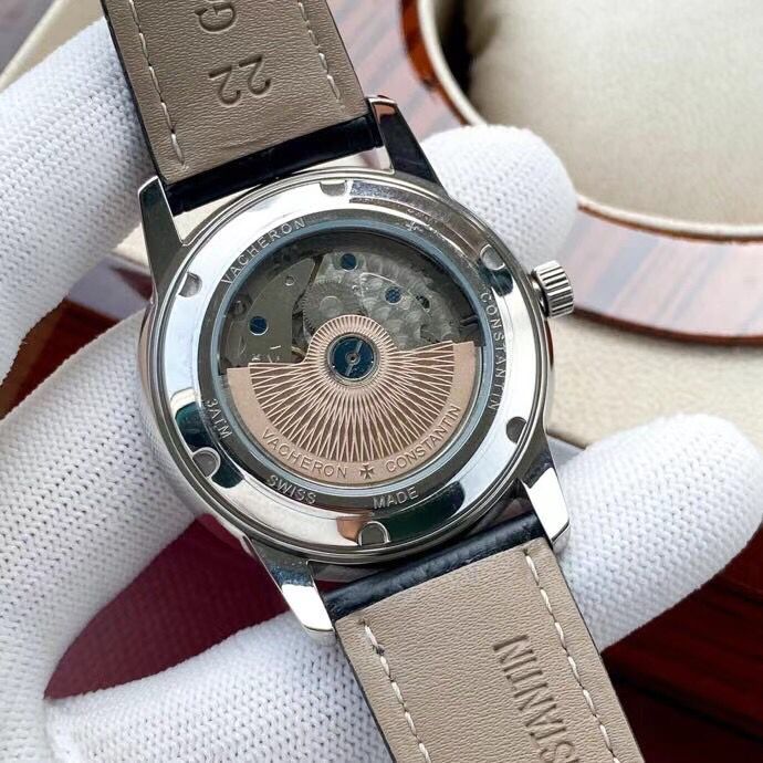 Takaisin: Kiillotettu ruostumaton teräs ruuvata takaisin läpinäkyvä mekaniikka paljastava keskus & Vacheron Constantin engravings