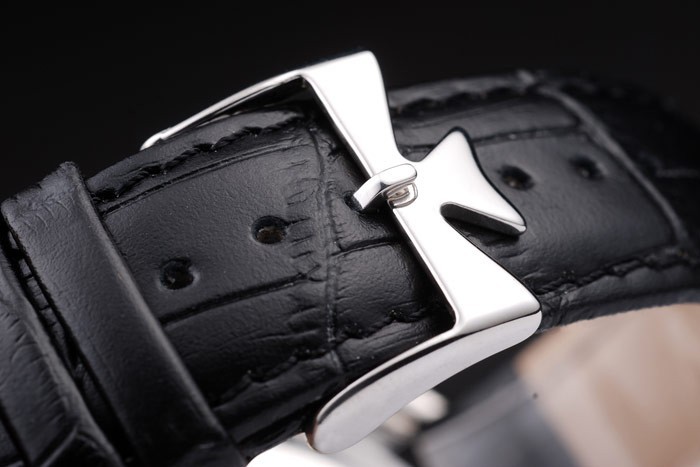 Rannekoru: Musta krokotiili nahkaranneke lämpöä kohokuvioitu Vacheron Constantin leima & kiillotettua ruostumatonta terästä Vacheron Constantin logo hook-solki Lukko