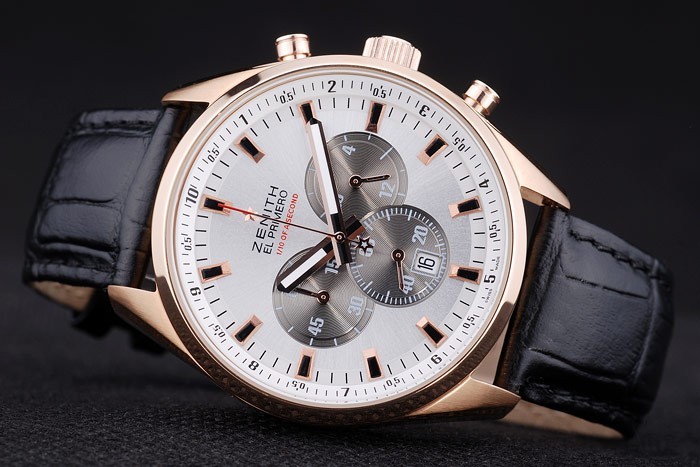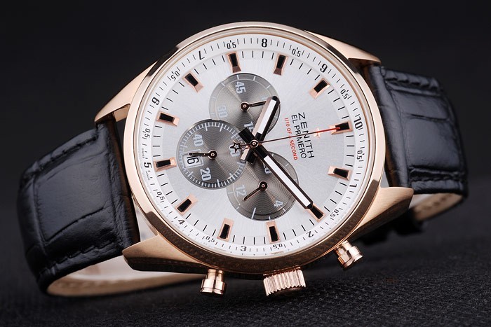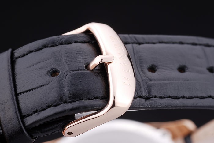 Rannekoru: Lämpö kohokuvioitu Zenith musta krokotiili nahka hihna nousi kullattu koukku-solki Lukko