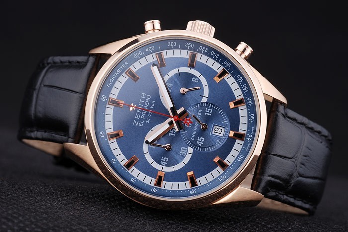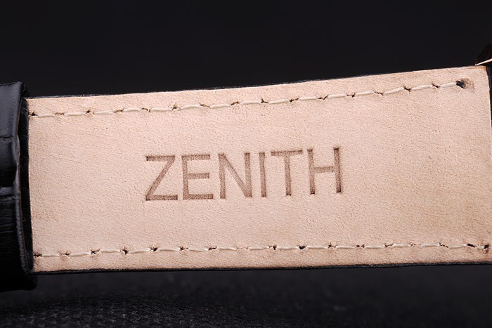 Rannekoru: Lämpö kohokuvioitu Zenith musta krokotiili nahka hihna nousi kullattu koukku-solki Lukko