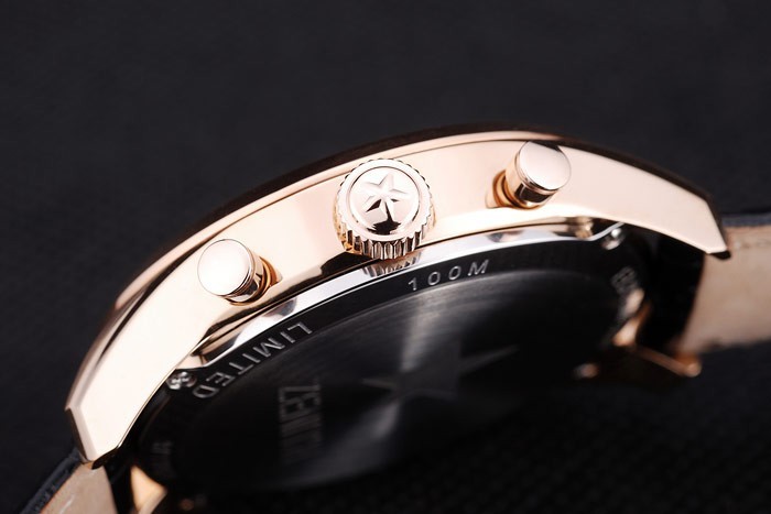 Kruunu: Ruusu-kullattu cutwork Kruunu Zenith tähti logokaiverrukselle & kaksi pienempää pyöreä painike Kruunut molemmin puolin of it